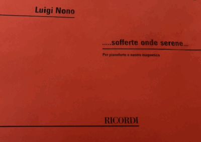 ..… sofferte onde serene … est une pièce emblématique du répertoire pour piano et bande, écrite au milieu des années 1970. Pour créer cette œuvre, le compositeur italien Luigi Nono s’est appuyé sur des d’enregistrements de fragments pianistiques improvisés par son compatriote Maurizio Pollini, réalisés d’après des esquisses préliminaires. Aux combinaisons de hauteurs d’ajoutent des éléments plus bruités, tels que des coups du plat de la main sur le bois de l’instrument, ou encore le son de l’enfoncement brusque de la pédale forte. Retravaillés en studio, ces fragments ont donné naissance à une bande de 14 min environ, avec laquelle la partie de piano live entre en dialogue. Selon les mots de Nono, il n’y a cependant « ni contraste, ni contrepoint » : le piano live et le piano enregistré sont deux facettes d’une même réalité sonore, s’amplifiant mutuellement. La musique, faite de silences, d’accélérations-décélérations et de points d’orgue, invite à une écoute profonde et attentive de la résonance. La rareté des indications de synchronisation entre la bande et le piano live — seulement huit repères en quatorze minutes — laisse une grande marge d’interprétation, chaque exécution offrant un éclairage renouvelé sur la relation entre les deux pianos.